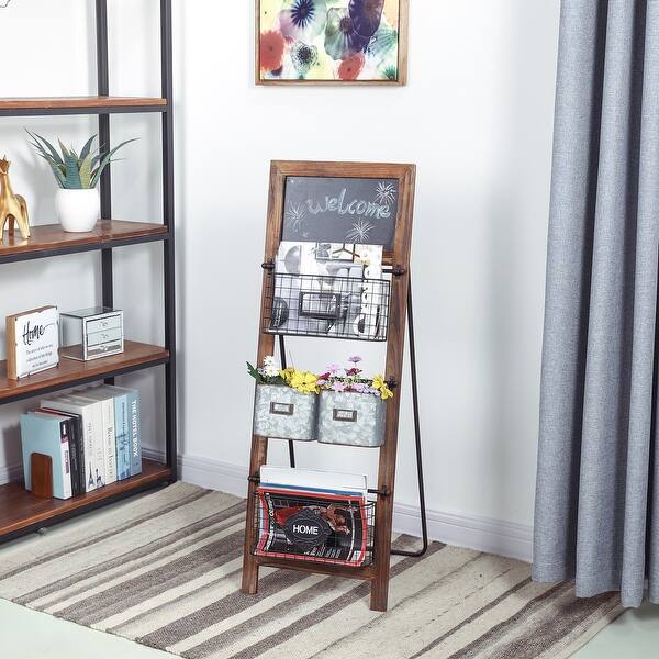 Glitzhome 43 H Rustic Farmhouse Metal Magazine Rack Storage Organizer On Sale Overstock 22886003
